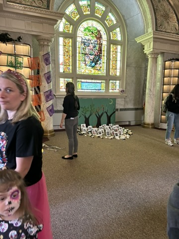 When Tiffany returned from her trip she wanted to create a large puppet to be displayed during the parade for the dia de los muertos community event in Columbus, OH now called Day of the dead Columbus Festival. With help from many community members pf the latino arts for humanity over a span of 2 months - assisting from Cartoneria, sewing & construction, Tiffany & the community brought the Catrina from her idea to real life for everyone to enjoy.